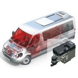 Кондиционеры для микроавтобусов со скрытым, передним расположением конденсора состоят из конденсорного блока размещенного в подкапотном пространстве и испарителя с возможностью размещения над фальш-потолком водителя, либо в задней части пассажирского пространства над проемом задних распашных дверей.